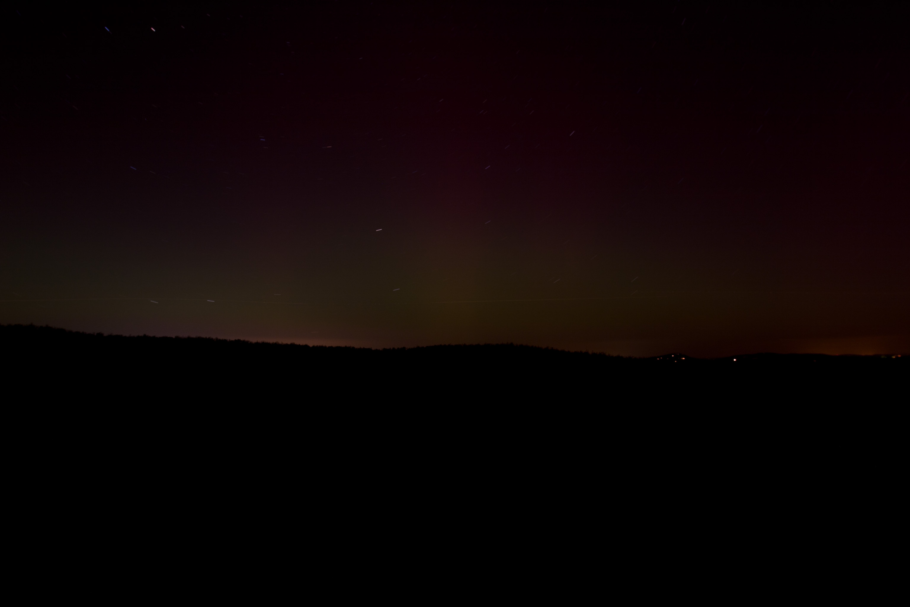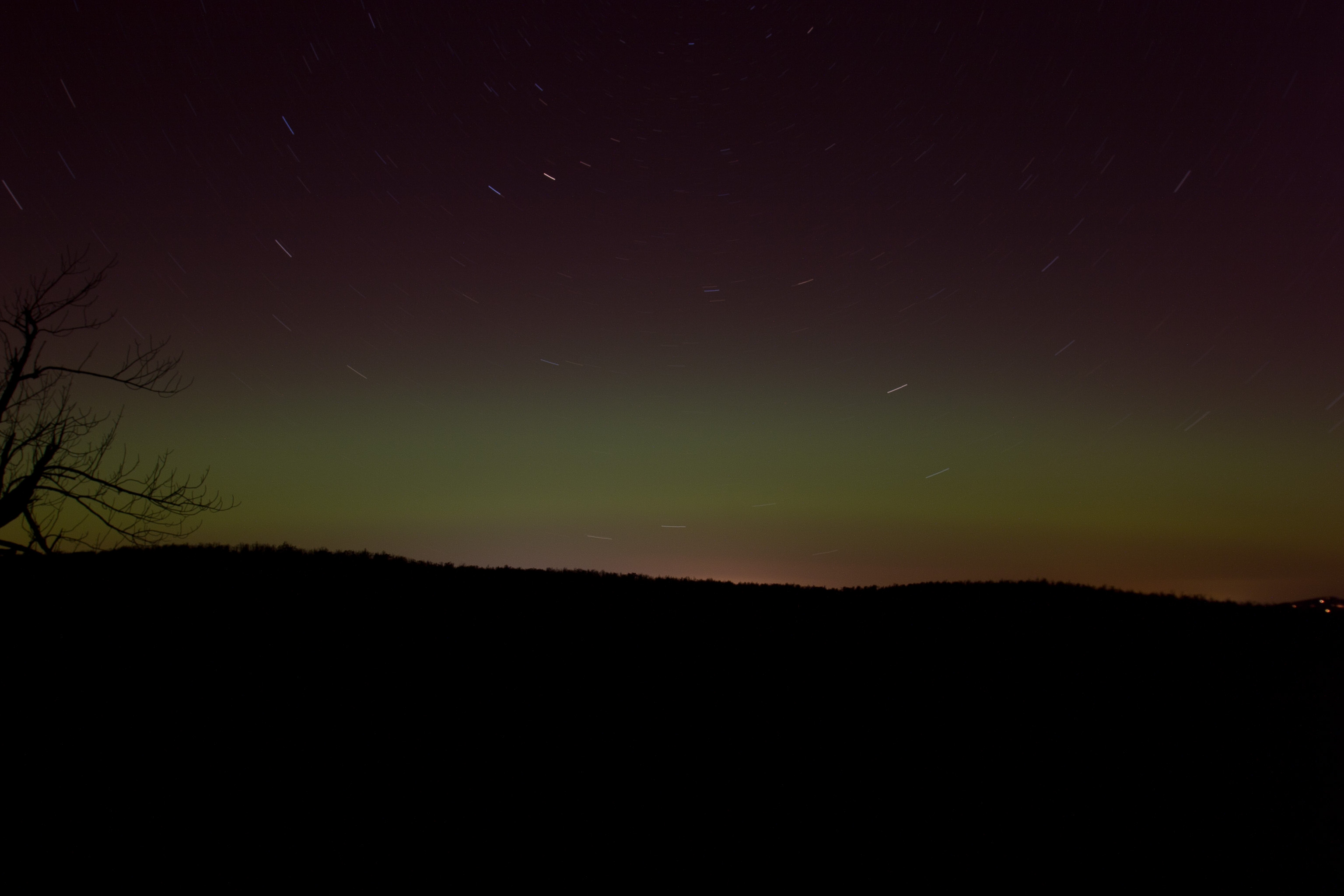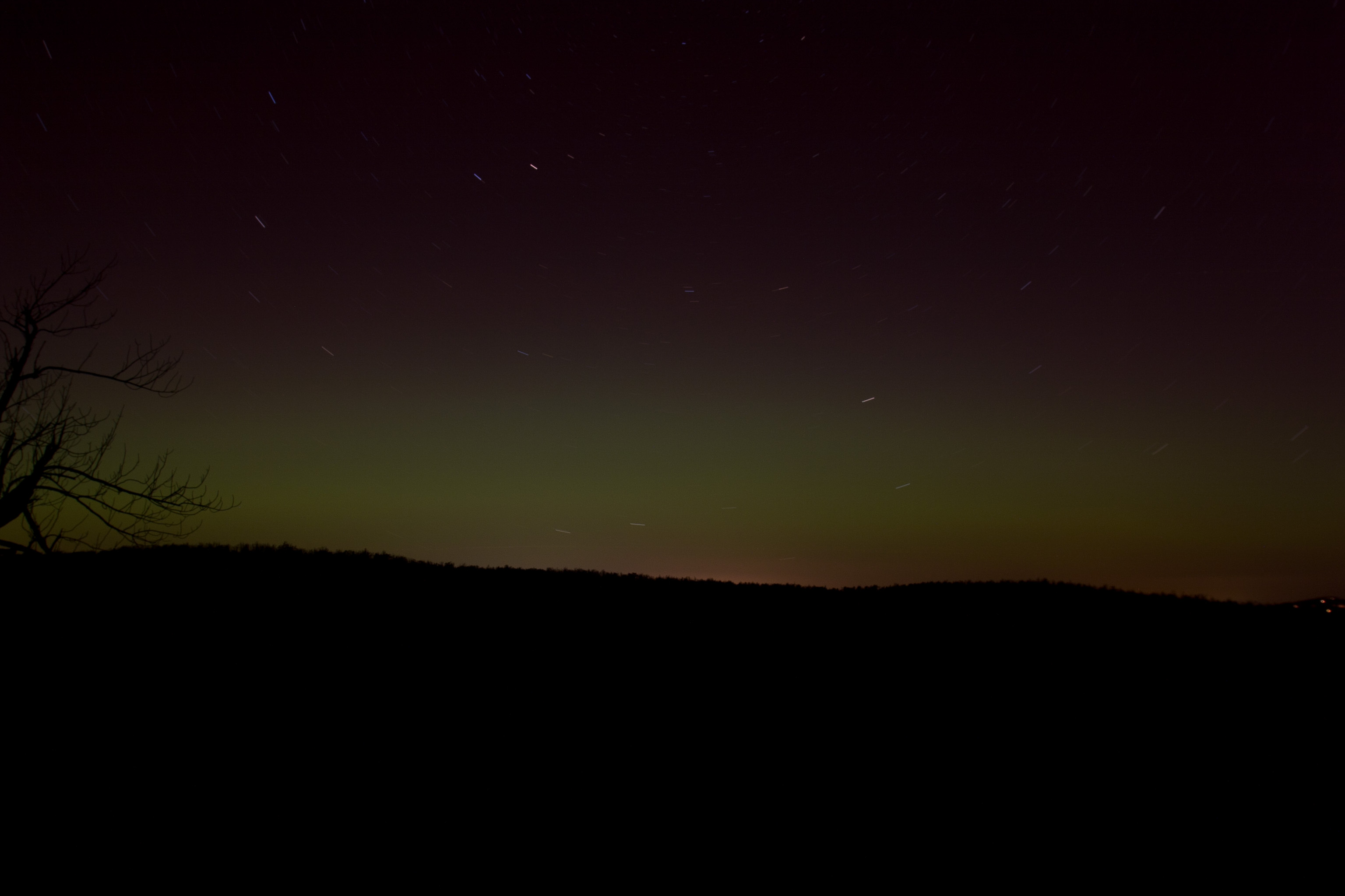 The green in the image is the aurora. The pink below is the glow from the lights of Front Royal.