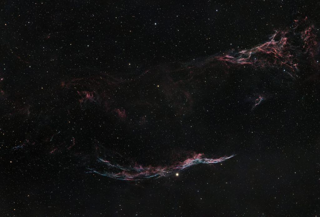 The Western Veil is part of a supernova remnant called the Cygnus Loop. Collectively, they cover several degrees of the sky and are much too large for a single field in even modest focal length (by astrophotography standards).