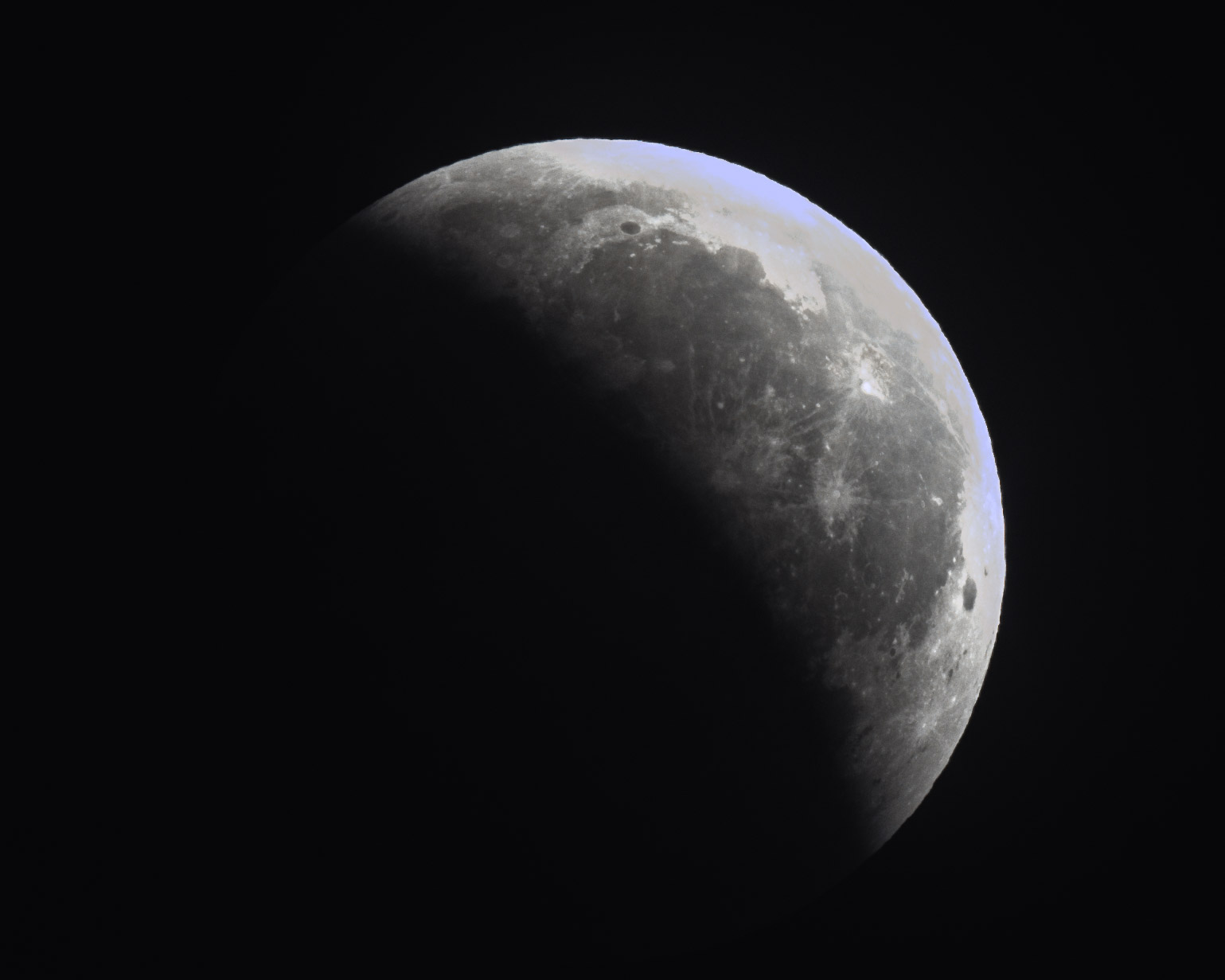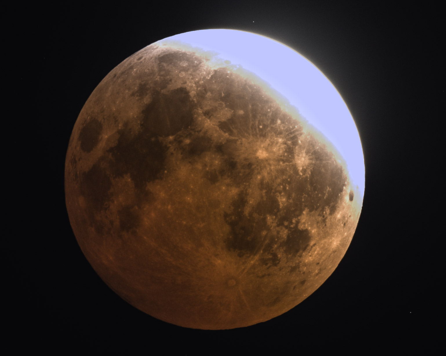 I didn’t actually get to start photographing until about half way through the partial phase. Thankfully, the skies and wind and equipment all cooperated and I was able to get some decent images over the remainder of the eclipse. The only downside was that the telescope focal length was a bit small for lunar photography. The moon only occupied a small portion of the frame and required a large crop. A larger refractor would have been a better choice. I almost opted for my C8 with a focal reducer which would work well for the moon but the wind gave me concern for a telescope with a larger cross section. I opted to play it safe with the smaller setup.