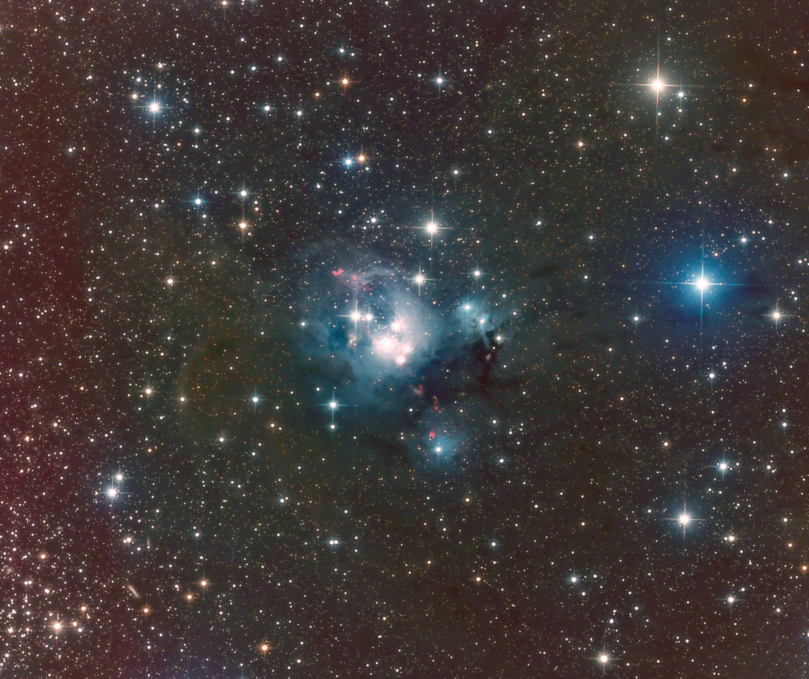 The image above is a July 2023 reprocess of the original data from 2021. It drops the H-alpha data from the mix and uses current tools and techniques. It emphasizes the detail in the reflection nebula and doesn’t try to pull out every last detail int he background. I think this is a much more successful version of the nebula! This new version is 23.5 hours of LRGB data compared the 29 hours of HaLRGB data from the original version.
