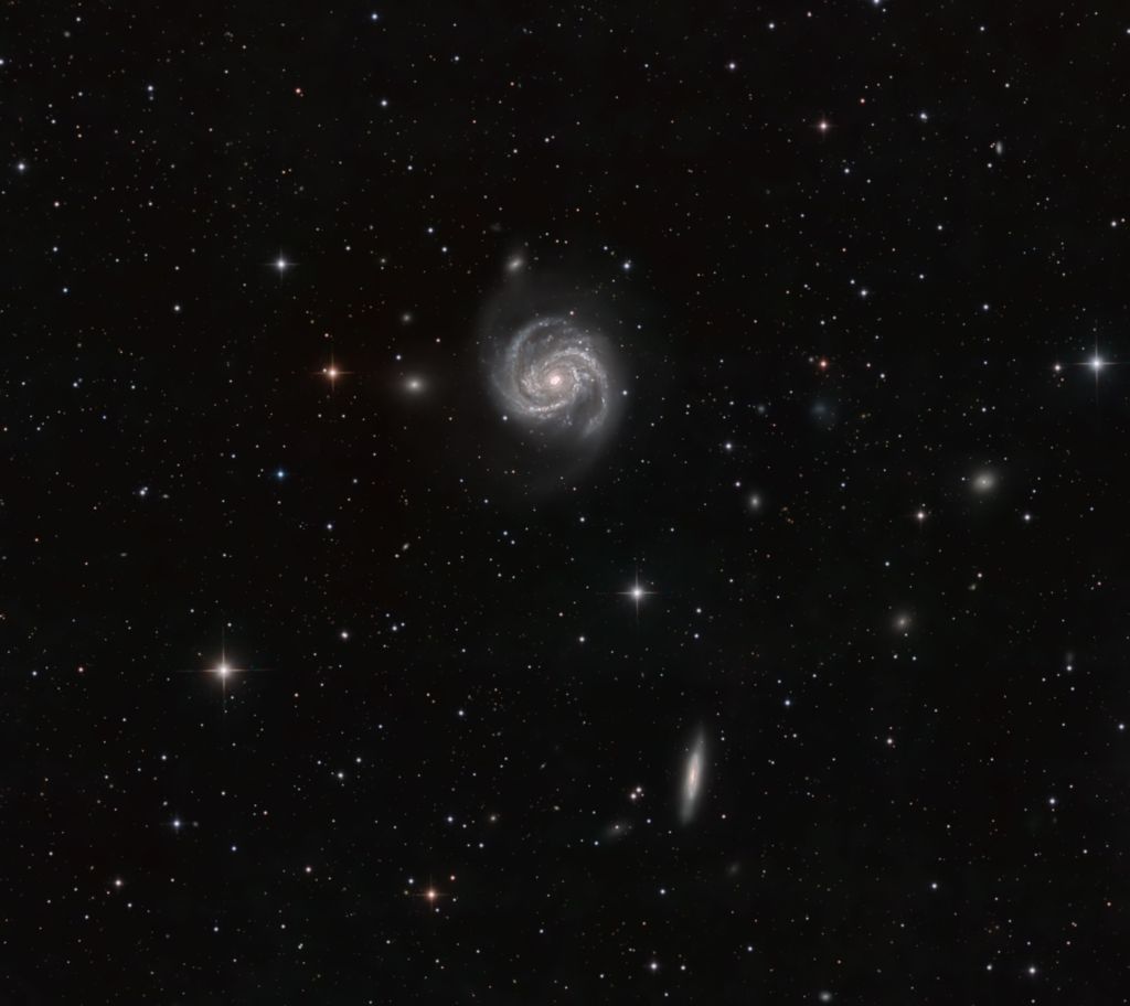 M100 is one of the many galaxies in the Virgo Cluster though it lies within the boundaries of the constellation Coma Berenices. It’s about 55 million light years away. It’s a grand design spiral galaxy and is about 60% of the size of the Milky Way. M100 has an apparent diameter only about 1/5 the diameter of the full moon.