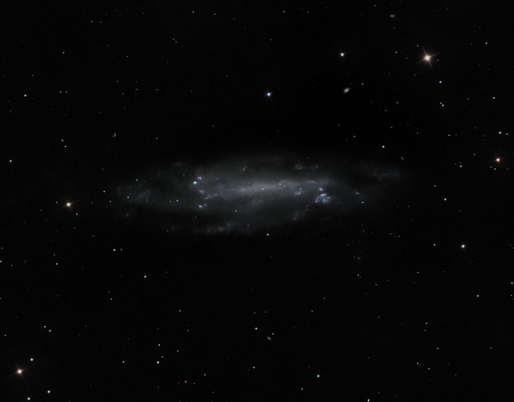 In any event, it’s an interesting galaxy to look at. Between the faintness of the body of the galaxy and the brightness of the blue nebulae it was a little challenging to process.