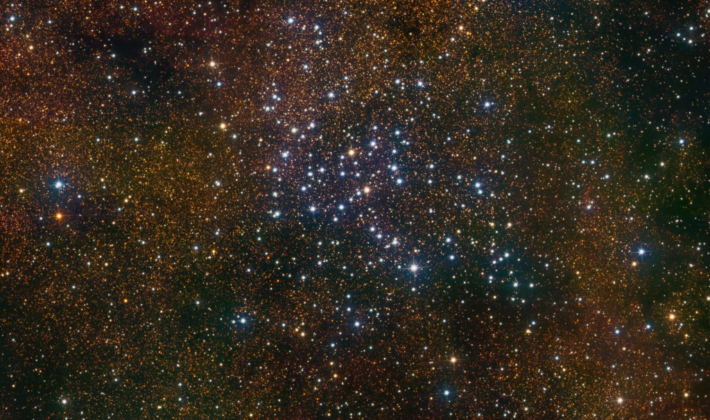 The cluster is about 2,000 light years away so the light we are seeing today started on its journey when Rome was throwing its weight around in the Mediterranean. The cluster is estimated to contain a few hundred stars and to be about 330 million years old.