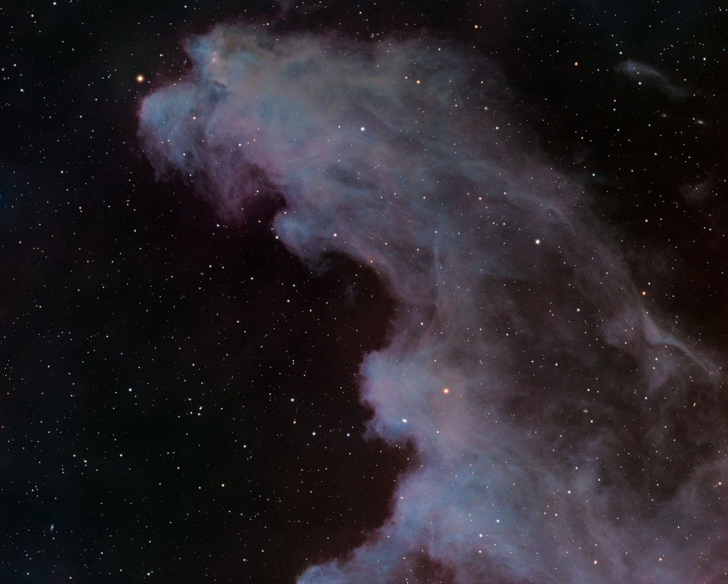 This is half of the Witch Head Nebula in the constellation Eridanus (near Orion). This is a reflection nebula and has a quite large apparent size as seen from Earth.